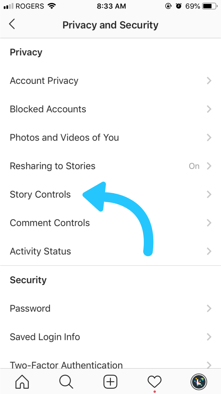 To do this, head to your Instagram profile, open your settings, tap on Privacy and Security, and then Story Controls.