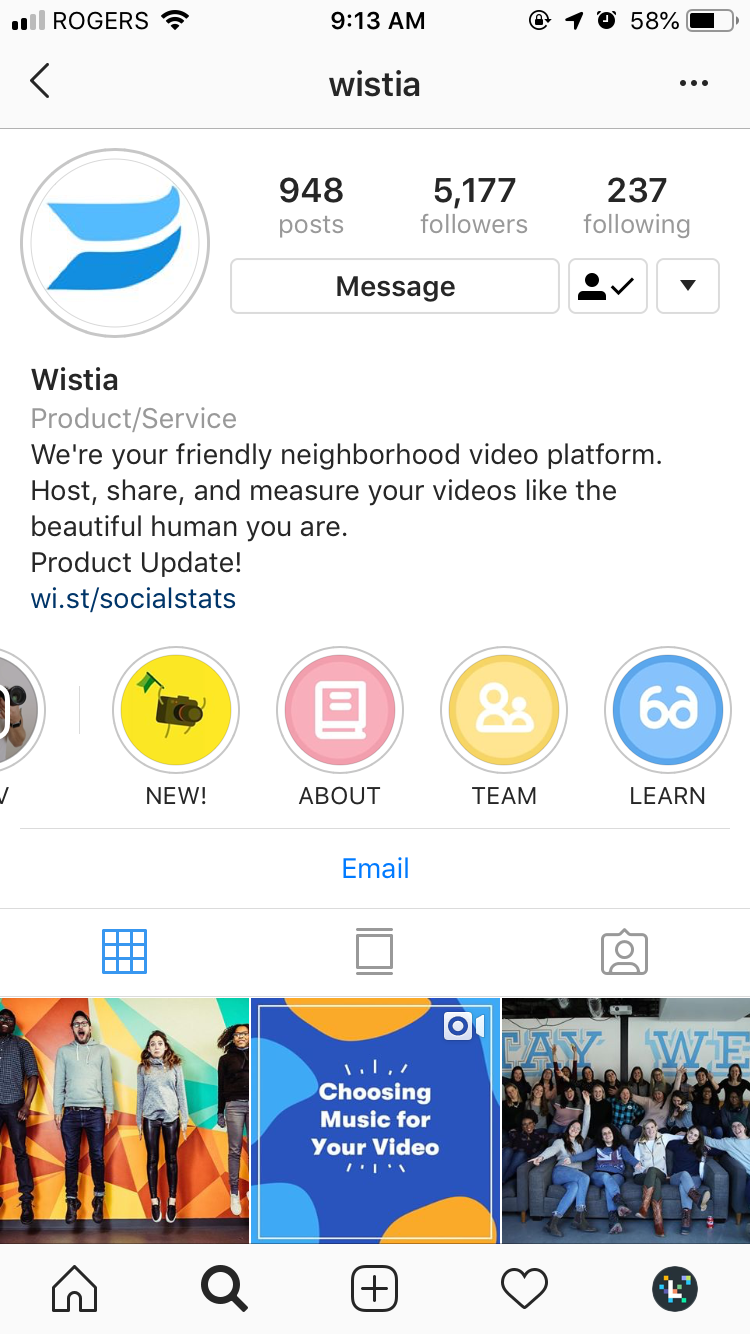 For example, video hosting and analytics company @wistia uses one of their Instagram Stories Highlights to offer tips on how to create great-looking videos on your mobile device: