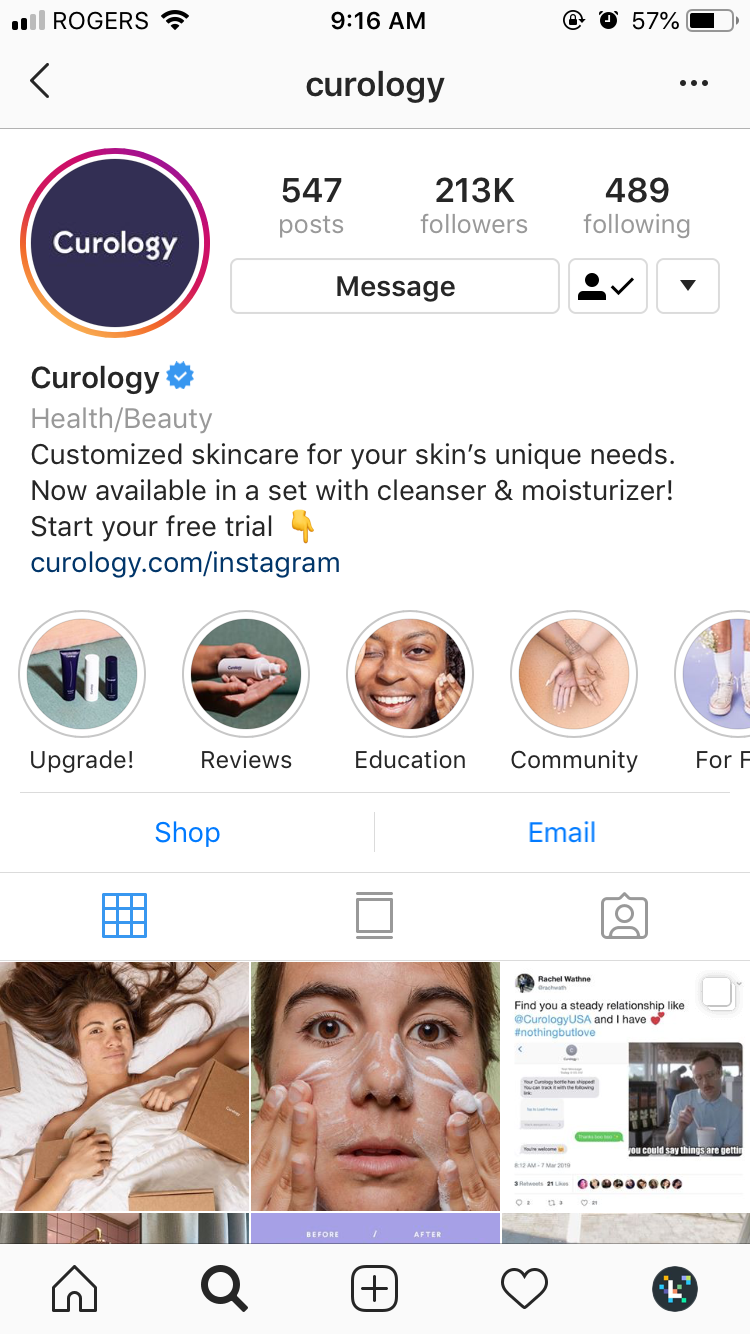 If you want to share your stellar customer reviews with your followers, you can create an Instagram Stories Highlight for that! @curology did this by sharing screenshots and posts of customers reactions to their products: